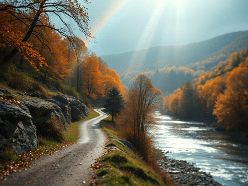 Autumn walks are the best. I love the crunch underfoot, as I walk along the path by the river. Stretching above me, the wooded hill is a myriad of changing colours. The red, orange, yellow, green, brown leaves pile up at the side of the path, nestling a log dancing with delicate fungi. As I pass a rocky outcrop, the last of the salty coastal sea-beet offers itself from its position at the high tide mark. The pools on the estuary floor glint as the sun’s rays strike out from the clouds through a delicate sprinkling rain. In front of me is the centrepiece, the luminous, shimmering rainbow arching over the valley and landing itself enticingly close – this way lies the crock of gold!