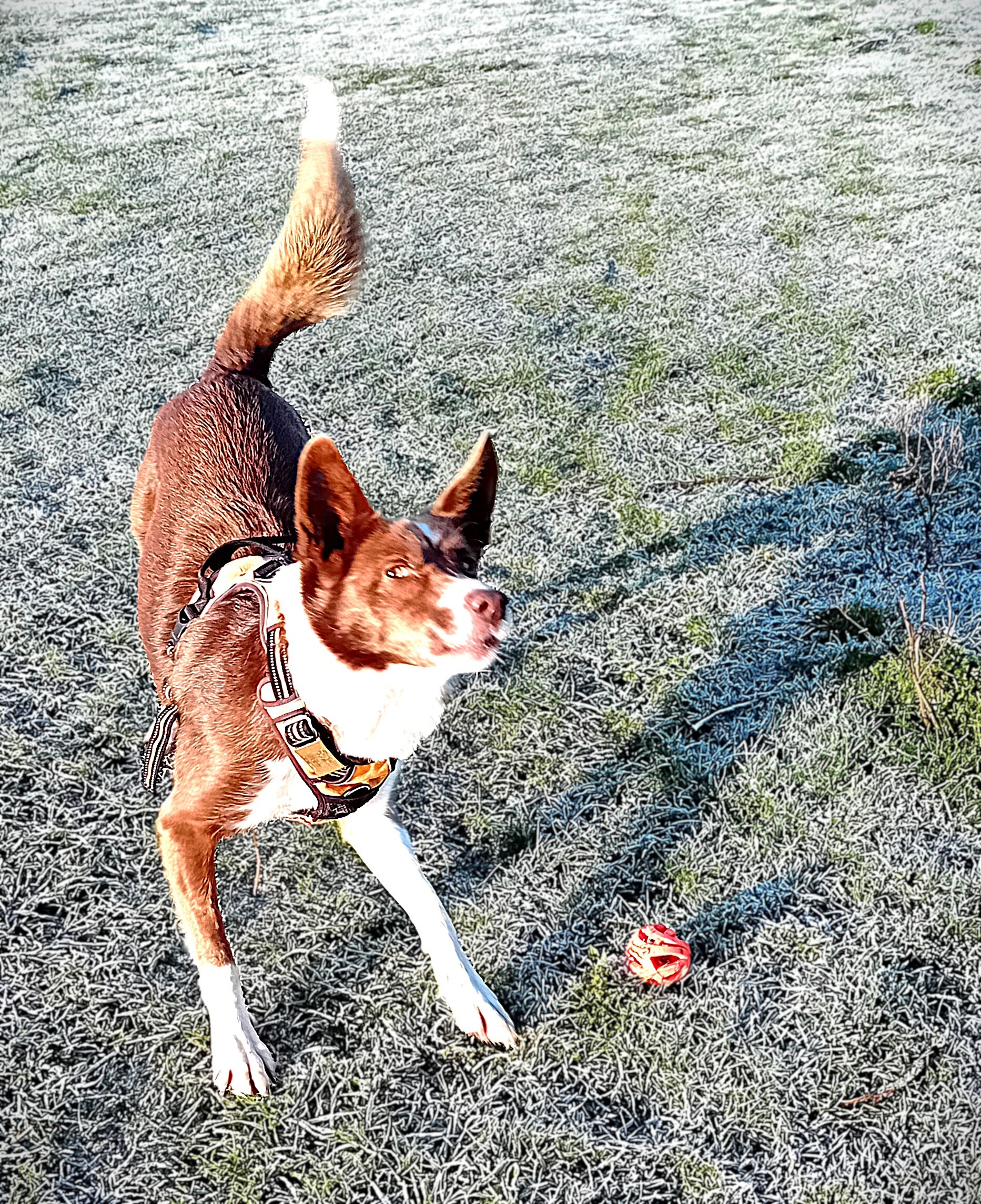 Ottie likes to go out early and greet the day. Her kelpie ears and keen nose lead us on a sniffing trail around the sparkling, frosty golf course. The soft pink dawn sky is emerging as we watch the last stars go out in the transition to a new day.