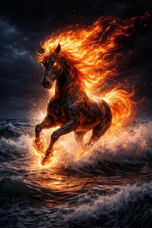 ‘The Kelpies’ in Scotland (Falkirk) is a sculpture of two magnificent horses with eyes of fire. Kelpies are water horses who are found in Scottish lochs, but they are actually spirits. In Celtic folklore there are many tales of shapeshifting water horses, found in rivers, lochs and the sea. They have a pretty dangerous reputation and are said to lure people or animals to their deaths and then eat them! In Wales there is the flying Ceffyl Dŵr horse who is also a shapeshifter and may be found near waterfalls or lakes. In Ireland the Each Uisce (associated with the sea, especially around Samhain) was thought to be half horse, half eel.  Another Irish water horse is the aughisky, which is similar to the Scottish kelpie.